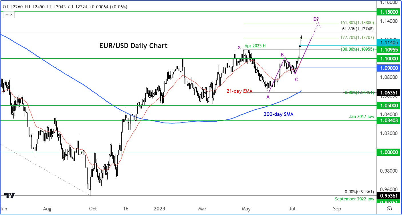 美联储最后一次加息的前景加上欧洲央行至少再加息两次的前景正在助推欧元/美元。美国和欧元区之间利差的收紧应该会让欧元/美元在下跌时获得的支撑,走向1.15可能正在酝酿中。